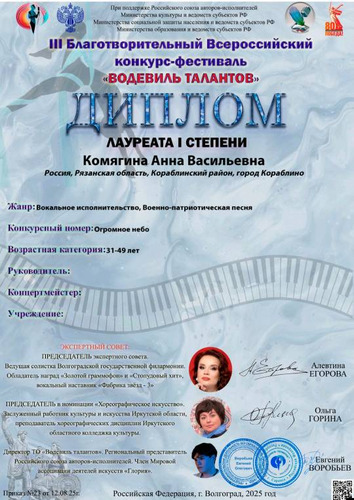 В октябре 2025 года состоялся III Благотворительный Всероссийский конкурс-фестиваль "Водевиль талантов". Участие приняли:
