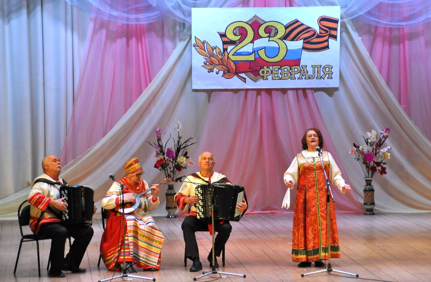 20 февраля в Кораблинском Дворце культуры состоялся праздничный концерт «Для вас, защитники Отечества». В фойе Дворца культуры работала ярмарка-продажа «Благотвори» с Первыми. Все работы, представленные на ярмарке, сделаны руками ребят из школ округа. Собранные средства будут перечислены в фонд помощи участникам СВО и членам их семей - «Форпост». С патриотическими номерами на сцене Дворца культуры выступили участники художественной самодеятельности Кораблинского округа: народные коллективы «Тандем», «Вдохновение», хор, вокальный ансамбль «Услада», вокальная студия «Голосок», солисты Кораблинского ДК, Кипчаковского и Пехлецкого СДК, танцевальный коллектив «Обаяние», литературное объединение «Кораблинские родники». Концерт стал возможностью выразить признательность всем защитникам Отечества, подарить им частичку тепла и заботы, объединить поколения и подчеркнуть важность традиций.